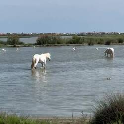 Auf dem Weg die ersten Flamingos und viele Reisfelder, jetzt Hotel Best Western Atrium zentral gelegen, heute nix Großes mehr, morgen bissi Kultur und Jeepsafari in die Camargue.