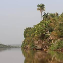 Am frühen Morgen, die Sonne ist gerade aufgegangen, geht es wieder auf ein Boot. Wir fahren in den River Gambia National Park, wo es Schimpansen und Hippos gibt. Die Chance auf Hippos ist am frühenLæs mere