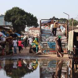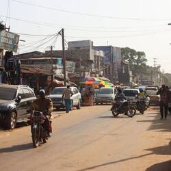 Nach einer letzten ruhigen Nacht in der Lodge machen wir uns auf den Weg in Richtung Banjul, der Hauptstadt Gambias. Wir müssen über den Fluss, was an zwei Stellen möglich ist: über die neue Brücke nahe der Stadt Farafenni oder mit der Fähre direkt ins Zentrum von Banjul. Die logischste Variante ist die Brücke, also fahren wir in Farafenni in diese Richtung. Die Straße ist breit, zwei Spuren jeweils eine in jede Richtung. In der Ferne einer der vielen Checkpoints, zu dem ich langsam heranrolle. Auf der Straße steht eine korpulente Frau mit schwarzer Polizeiuniform. Als ich hinter ihr am Stoppschild anhalte, dreht sie sich sichtlich angefressen um. "What is your problem?!?!" Brüllt sie. "There is no problem" antworte ich ohne zu wissen, was denn eigentlich gerade ihr Problem ist. "Das ist hier eine Einbahnstraße! Sie dürfen nicht in diese Richtung fahren, kapiert?" "Aber es gibt zwei Spuren und es gab auch kein Schild!" antworte ich. Hinter mir stehen bereits weitere Fahrzeuge und es gibt auch keine Alternativroute auf dem kurzen Stück bis zur Brücke. "Ich habe gerade gesagt, das ist eine Einbahnstraße, verstanden?" blafft sie noch deutlich aggressiver als vorher. "Und jetzt?" Tja, das weiß sie auch nicht, verabschiedet mich also mit den Worten: "Fahr weiter", was logischerweise auch geschieht.