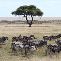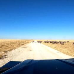 Es geht wieder einmal früh los, noch vor Sonnenaufgang starten wir in Richtung Etosha Nationalpark. Die Zeit ist jetzt gut, das Gras nicht mehr allzu hoch und die Wasserlöcher oft schon trocken,Leggi altro