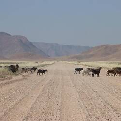 Wir verlassen den Namib-Rand und fahren weiter in Richtung Lüderitz. Die Straße ist ziemlich übel, die Wellblechpiste lässt eigentlich keine Geschwindigkeiten von mehr als 40 Km/h zu. Wenn man malLeia mais