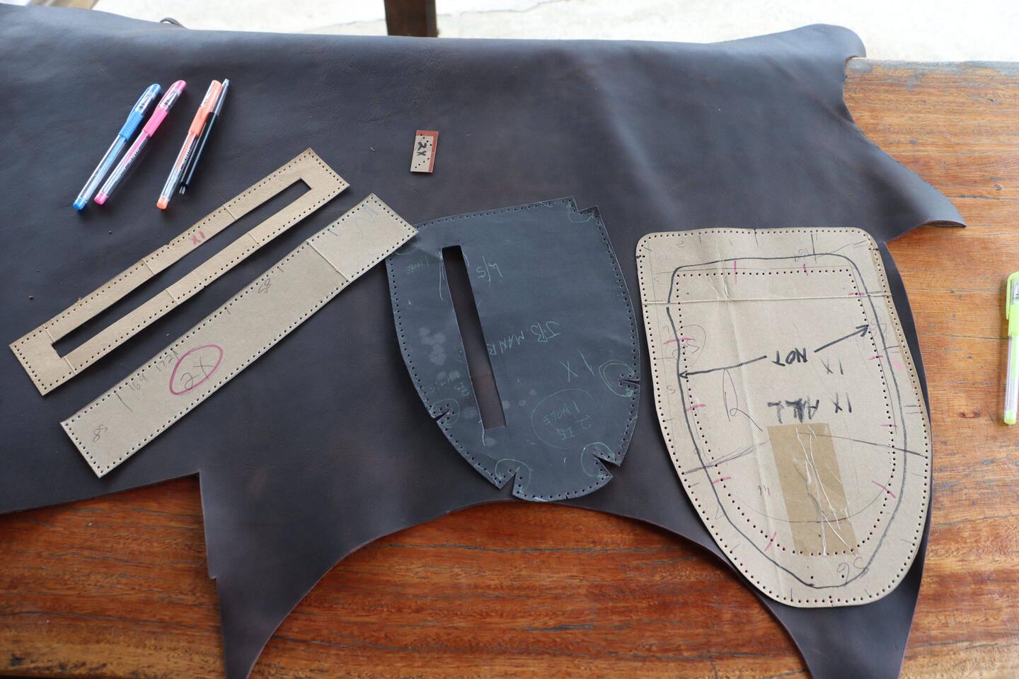 Gemeinsam mit Louis fange ich am morgen an etwas aus Leder zu fertigen. Louis hat diverse Schnittmuster, ich suche mir eines davon aus, dann beginnt die Arbeit. Der schwierigste Teil ist die AuswahlLeggi altro