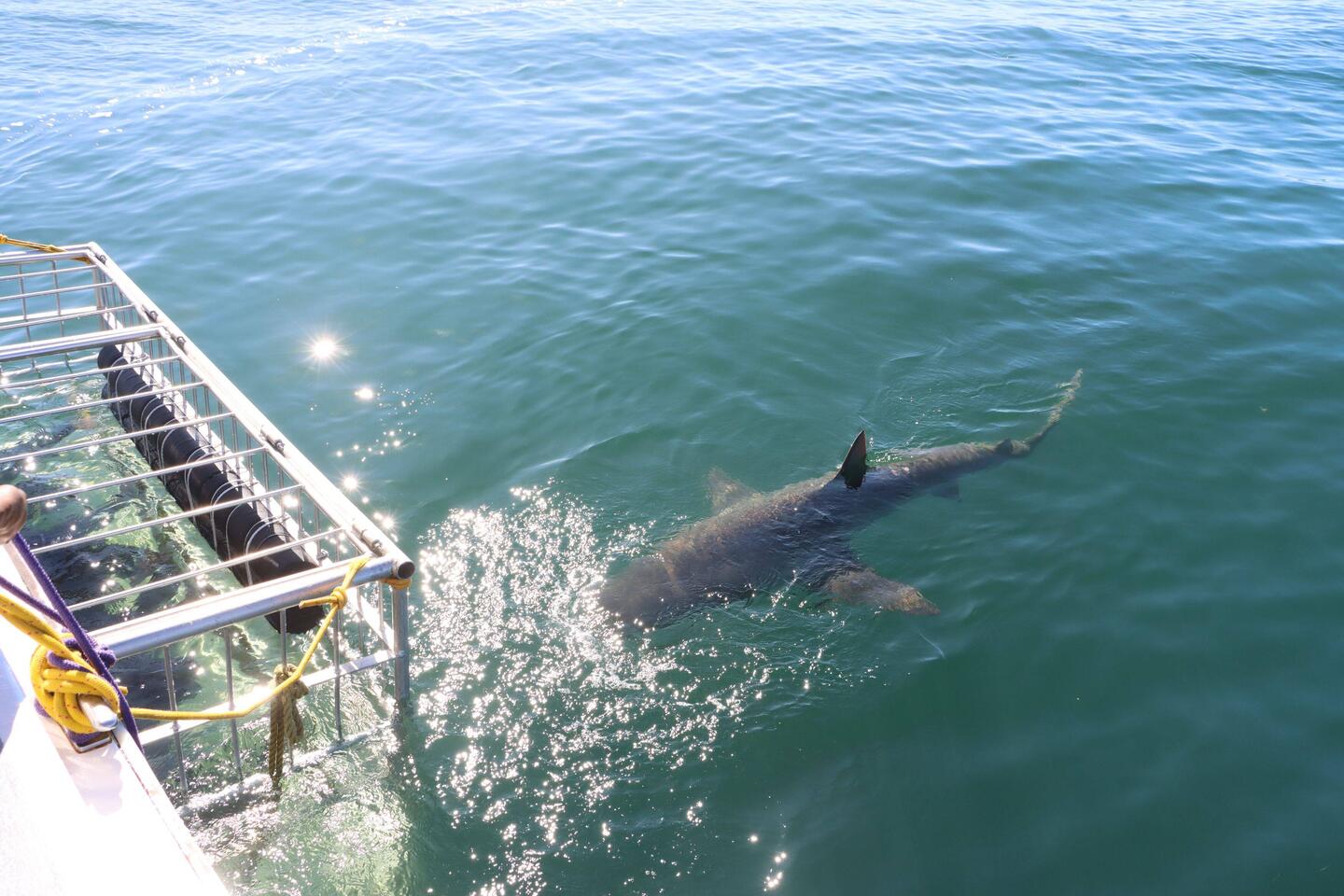 Früh am Morgen breche ich auf, fahre zuerst in eines der Industriegebiete südlich von Kapstadt, wo es für das Hubdach im dritten Anlauf nun endlich einen neuen Zeltstoff gibt, der dann auch passt. Auch wenn ich dreimal herfahren musste, hat es sich gelohnt, der neue maßangefertigte Zeltstoff kostet rund ein Drittel von dem, was er in Deutschland gekostet hätte. Nachdem alles verladen ist, muss ich mich ein wenig sputen, ich fahre in die Stadt Simons Town, wo ein Boot am Mittag auf mich wartet. Mit dem Boot geht es raus in die Bucht der False Bay, einer der wenigen Orte Weltweit wo die Chance auf Haie besonders groß ist. Bis vor wenigen Jahren war dies ein guter Platz für Weiße Haie, vor rund 15 Jahren verschwanden die Tiere nach und nach, mittlerweile gibt es keine mehr in der Bucht. Die letzte Sichtung war 2022. Niemand weiß so recht, wieso sich die Weißen Haie aus der Bucht zurückgezogen haben, Futter gäbe es genug, was die großen Seehundkolonien zeigen, an denen wir vorbeifahren. Irgendetwas wird der Menschheit schon eingefallen sein. Immerhin gibt es noch reichlich Bronzehaie, bis zu vier Meter lang. Nach einer knappen Stunde wird der Käfig, der hinten am Boot befestigt ist, zu Wasser gelassen. Ich steige in einen Neoprenanzug und betrete schließlich den Käfig. Das eiskalte Wasser ist wie ein Schlag ins Gesicht, ich kann kaum atmen, bekomme keine Luft. Hinzu kommt das beklemmende Gefühl des Käfigs, der hier im Eiswasser treibt. Ach ja, und Haie gibt es auch noch. Vier große Haie sind mittlerweile da, ich brauche mindestens zehn Minuten bis ich auf die Situation klar komme und weiß, wo ich mich festhalten kann und wie ab- und auftauchen funktionieren. Die Haie schwimmen ganz nah am Käfig vorbei, keine 20 Zentimeter von mir entfernt. Wenn einer der ausgewachsen Tiere den Käfig mit Schnauze oder Flosse trifft, wird dieser hin- und hergeschlagen. Auch wenn der Käfig rundum geschlossen ist, traue ich mich kaum die Beine auszustrecken, vor allem dann nicht, wenn man mit Kopf über Wasser plötzlich eine der Flossen oberhalb der Wasseroberfläche auf einen zuschwimmen sieht. Nach 20 Minuten muss ich aus dem Wasser, meine Hände sind fast taub vor Kälte. Während ich mich anziehe, übergeben sich die Ersten ins Wasser, das Meer ist ziemlich unruhig. Zum Glück habe ich schon gestern Abend vorgesorgt und ein gutes Mittel gegen Seekrankheit eingenommen. Es geht irgendwann am Nachmittag zurück an Land und schließlich nach Kapstadt. Ein wahnsinniges Erlebnis an einem der letzten Tage in Afrika. Czytaj więcej