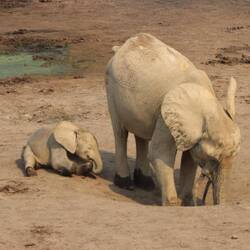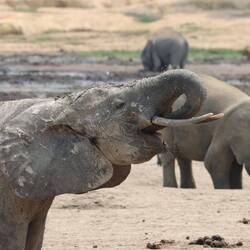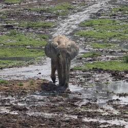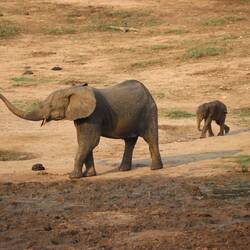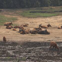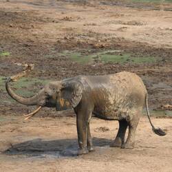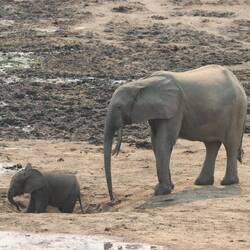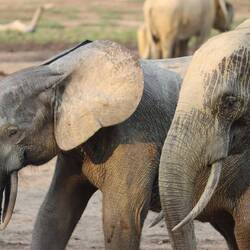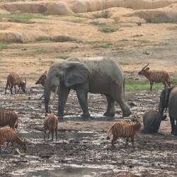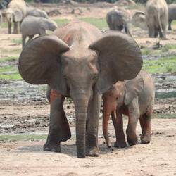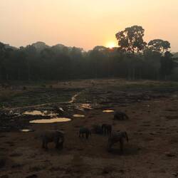 Wir erreichen schließlich die Bai und als ich auf den Aussichtspunkt hochsteige und von oben auf die Lichtung schaue, kann ich kaum glauben was ich sehe. Ich habe schon oft wilde Elefanten gesehen, in Botswana, Tansania, Namibia, aber so etwas, das habe ich noch nie gesehen. Es sind rund 150 Elefanten auf der Lichtung. Die Elefanten sind damit beschäftigt, den Boden umzupflügen, sie kommunizieren und interagieren mit dem Rüssel und vertreiben schwächere Artgenossen von den Wasserlöchern. Es gibt sekündlich neue Motive und dass gleichzeitig auch noch eine Horde Büffel und rund 50 Bongos anwesend sind, ist eigentlich nebensächlich. Neben mir und den beiden Rangern ist nur ein Wissenschaftler anwesend, sonst habe ich diesen Ort vollkommen für mich alleine. Am Mittag ändert sich durch die Hitze und das Sonnenlicht die Farbe der Elefanten von dunkelgrau ein bisschen ins Goldene. Wir machen uns nach Stunden zurück auf den Weg zur Lodge, wo bei einem Feierabendbier das Gesehene in irgendeiner Form glücklicherweise gut verarbeitet werden kann.Læs mere