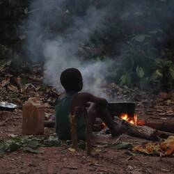 Die Nacht ist super kurz, die Baaka holen nach Einbruch der Dunkelheit die Trommeln raus und singen bis rund 2 Uhr in der Nacht. Um 4 Uhr ist schon wieder so viel Unruhe im Camp, dass die Nacht also auch für mich vorbei ist. Viel Schlaf gab es für mich im letzten halben Jahr nicht unbedingt.