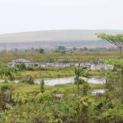 Am Nachmittag erreiche ich mein Tagesziel, ein Hotel mitten im Nirgendwo, das beste der ganzen Republik Kongo. Vielleicht gibt es kein besseres Hotel im Umkreis von 1000 Kilometern. Pfaue laufen durch den Garten, es gibt einen offenen Ballsaal und ein gehobenes Restaurant, es ist unglaublich chic. Es ist nur leider niemand anwesend, kein Personal, kein Gast, das Hotel ist komplett verwaist. Bei strömendem Regen laufe ich 15 Minuten durch den Hotelkomplex und finde niemanden. Es stehen einzelne Geländewagen auf dem Hof, bei näherem Hinschauen sind alle kaputt oder haben platte Reifen. Die Autos wurden irgendwann mal hergefahren und dann vergessen. Ich will eigentlich schon fahren, als ich in einem der Gebäude dann doch jemanden antreffe. Die Zimmer sollen 100€ die Nacht kosten, für 15€ kann ich im Auto schlafen. Es wird eine Dame ins Restaurant beordert um mir Essen zu kochen, das Essen schmeckt überraschend gut. Im Restaurant steht der Weihnachtsbaum noch immer in der Ecke, in der Bar gibt es nur noch ein paar halbleere Flaschen mit Hochprozentigem. Nicht zum ersten Mal auf der Reise frage ich mich, wozu dieser Ort wohl dienen mag.Læs mere