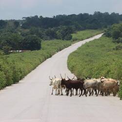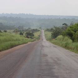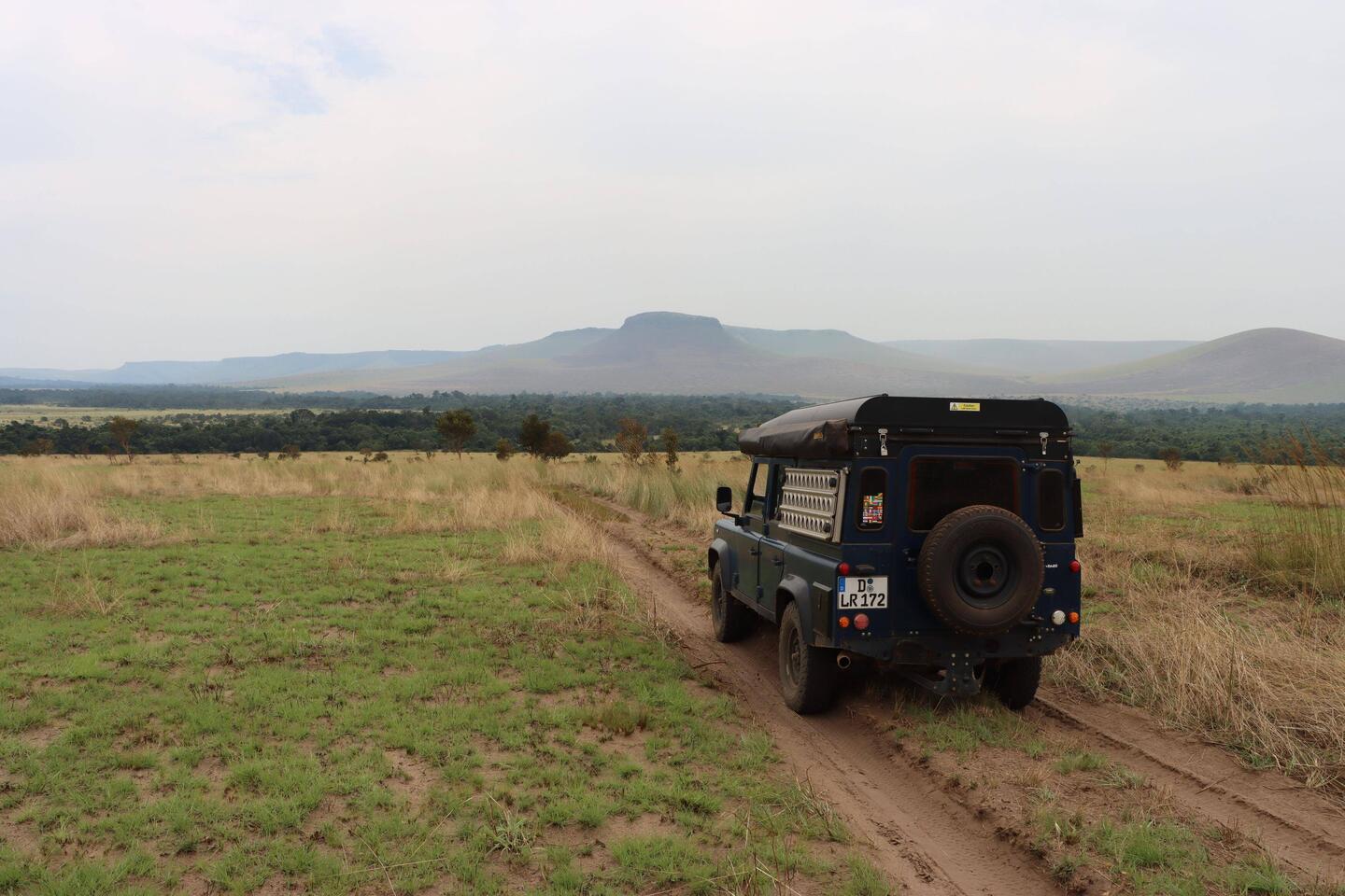 Es geht weiter durch den dichten Regenwald, auch heute begleiten mich zehntausende Schmetterlinge. Es gibt über Stunden keinen Empfang und keine anderen Fahrzeuge auf der Straße. Die Straße führt durch den riesigen Odzala Nationalpark, anschließend ändert sich die Umgebung. Dichter Wald wird zu bewaldeter Steppe, überall riesige Wiesen voll mit sattem grünen Gras.