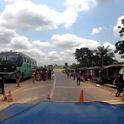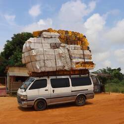 Es geht wieder auf die Straßen der Republik Kongo. In Ouesso versuche ich noch einmal alles aufzufüllen. Zuerst geht es in den Supermarkt aber es gibt fast ausschließlich Produkte aus Plastik, ein paar wenige Dosen mit Lebensmitteln, kein Obst, kein Gemüse und keine Kühlung. Ich fahre weiter zur einzigen Bank in der Stadt, möchte Geld abheben doch bei der Auszahlung kommt eine Fehlermeldung. Die 300€ werden trotzdem abgebucht. Dann weiter zu den beiden Tankstellen in der Stadt, beide haben keinen Diesel. Fängt ja schon gut an. Ich verlasse Ouesso, werde kurz darauf von der Polizei angehalten und der Polizist ist der Meinung, die Person auf dem Foto im Pass wäre nicht ich. Es gibt eine lange Diskussion, ich zeige ihm alles an Dokumenten was ich habe aber er ist trotzdem der Meinung, der Pass würde jemand anderem gehören. Ich gebe irgendwann auf und zucke nur noch mit den Schultern und antworte mit 'doch' bei jedem Mal wo er wiederholt, dass das nicht mein Pass ist. Irgendwann gibt er dann auch auf und lässt mich fahren. Nach Geld fragt er nicht (was ich schon die ganze Zeit erwartet habe), was ein komischer Checkpoint.