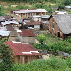 Auch rund um das Dorf gibt es Stollen, wir besichtigen einen davon. In den Stollen wird noch immer nach Gold gegraben, erst kürzlich ist einer eingestürzt und hat ein Kind begraben. Ich bin froh, als wir wieder draußen sind. Wir besuchen schließlich die Goldgräber. Im Gegensatz zu gestern arbeitet man hier tief im Wald, nutzt Pumpen und Waschstraßen um das Gold zu finden. Die Umweltverschmutzung ist massiv, Bäume werden gefällt, der gesamte Boden umgegraben. Das Wasser ist braun vom darin aufgelösten Sand und Lehm, auslaufende Betriebsstoffe der Generatoren und Pumpen färben das Wasser in allen Farben des Regenbogens. Schon das Mitführen einer Kamera in der Tasche sorgt für heftige Anfeindungen, niemand möchte hier fotografiert werden. Alle Goldgräber sind von der harten Arbeit extrem durchtrainiert, schon die Kinder sind muskulös. Täglich über zehn Stunden schwere körperliche Arbeit, oft im knietiefen Wasser, dazu ständig in Lebensgefahr durch einbrechende Stollen, herunterfallende Steine und die laufenden Maschinen ist für mich persönlich unvorstellbar.