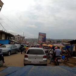 Es geht weiter in den Westen der Republik Kongo. Ich brauche dringend Bargeld, muss außerdem die SIM-Karte wieder aufladen, also halte ich in Dolisie, einer mittelgroßen Stadt an. Am Geldautomaten möchte ich Geld ziehen, auch hier kommt das Geld nicht raus, wird aber abgebucht - jetzt schon zum zweiten Mal. In der Bank eine riesen Schlange, hunderte Leute warten vor den Schaltern. Ich muss also im Nachgang versuchen, den Betrag irgendwie zurück zu bekommen, immerhin war es keine große Summe.