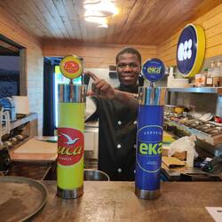 Wir paddeln zurück und nach der Palmenweinverkostung verkoste ich am Abend noch eines der lokalen Biere, die es in der Bar der Lodge gibt.Læs mere