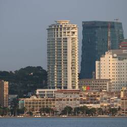 Ich besichtige am Morgen zu Fuß das Stadtzentrum Luandas. Es gibt einen Fußweg vom Jachthafen einmal komplett um die Lagune, es ist kein einziger anderer Tourist und so gut wie kein Einheimischer zu sehen. In Luanda wird aus Sicherheitsgründen eigentlich nicht zu Fuß gegangen, wie man mir später erklären wird. Rund um die Lagune und später auch im Stadtzentrum fühlt es sich für mich nicht unsicher an, auch wenn die Statistiken etwas anderes sagen. Was mir jedoch auffällt, sind zum Einen die vielen Obdachlosen. Ich werde unzählige Male, häufig auch von Kindern, angebettelt. Ich bin an manchen Stellen froh, kein portugiesisch zu sprechen und außer 'Hey Amigo' nicht zu verstehen, was man gerade von mir möchte. Zum Zweiten fällt der krasse Kontrast in Luanda auf. Zwischen den vielen Obdachlosen mischen sich Männer im Anzug und Krawatte, gerade im Bankenviertel. Hochhäuser mit Glasfassade stehen neben total heruntergekommen Gebäuden, moderne Sportwagen parken neben total kaputten alten Autos, vor der Skyline der Wolkenkratzer fischen Männer klassisch mit Pirogen und Netzen. Im Stadtzentrum sind an vielen Fassaden noch die Spuren des Bürgerkriegs zu sehen, welcher fast 30 Jahre angedauert hat.