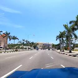 Der Highway ins Zentrum von Luanda ist breit und größtenteils ohne Markierung, so passen mehr Fahrzeuge nebeneinander. Stau gibt es keinen, die Polizei ist dafür jedoch omnipräsent, an jeder Kreuzung wird kontrolliert. Ich werde kein einziges Mal angehalten, bin trotzdem froh im Zweifel den Versicherungsnachweis zu haben.