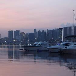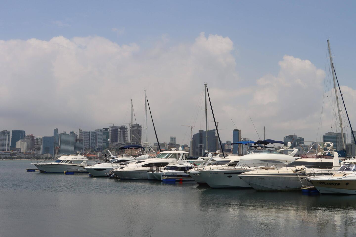 Der Stadtkern von Luanda taucht auf, riesige Hochhäuser zieren den langgezogenen Hafen. Es wirkt ein bisschen wie Lagos, jedoch ohne den Stau. Die Straße durch den Hafen ist breit und modern, Palmen säumen die Straße. Ich steuere schließlich den Jachthafen an, hier gibt es die Möglichkeit auf dem Parkplatz kostenlos zu übernachten. Nicht umsonst ist dieser Platz berühmt, man parkt direkt an der Wasserkante mit Blick auf den Hafen und die Skyline von Luanda.