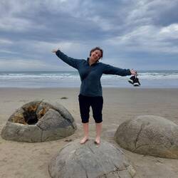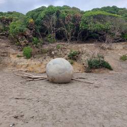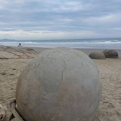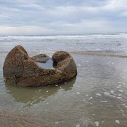 Einfach nur Steine? Nein, runde Steine. Runde, grosse Steine einfach so am Strand...wieso? Woher? Keine Ahnung, wir sind keine Geologen 🤷‍♂️.