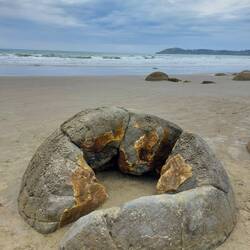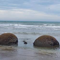 Nach den Elephant Rocks, ging die Reise wieder zurück ans Meer. So richtig direkt ans Meer. Moeraki heisst der Ort, an dessen Strand eine besondere Sehenswürdigkeit rumliegt....und habt Ihrs schon erraten?