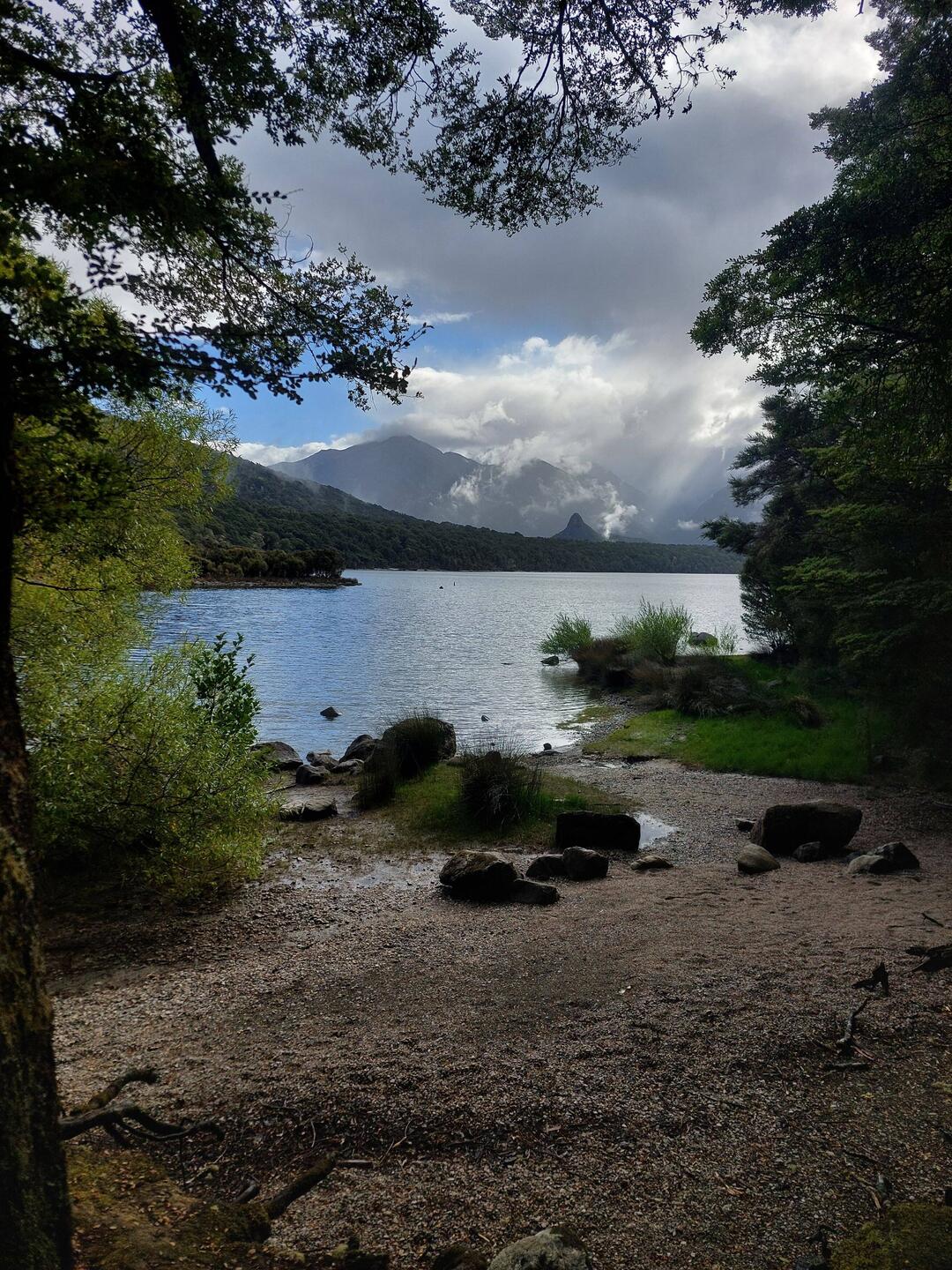 Letztendlich haben wirs doch noch in die Possum Lodge geschafft, ein kleiner, süsser Campingplatz direkt am Ufer des Lake Manapouri. Als der gröbste Regen vorbei war, gings ab in die Küche für ein frühes Nachtessen. Nach dem Essen wars Zeit für einen Abendspaziergang, aber zuerst mussten wir uns noch umziehen. Die Sandflies (kleine, stechende Biester) sind sehr penetrant.