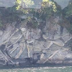Auf der Überfahrt vom Lake Manapouri konnten wir die Spider-Rocks sehen. (Steine die von Quarz durchzogen sind wie Spinnweben).