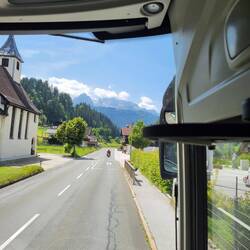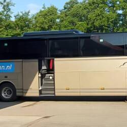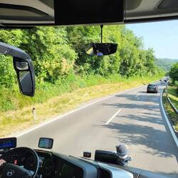 Vandaag al vroeg op moeten staan . De reis is begonnen . Wat leuk is dat we dezelfde chauffeur hebben als vorig jaar . Rond 17.30 uur kwamen we aan bij de eerste overnachting .