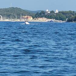 Vandaag met de dolfijnenboot geweest . Jammer genoeg niet veel dolfijnen gezien , omdat het te druk was met andere boten . Toen besloot de kapitein maar een stuk verder rond te varen .was wel heel ergLäs mer