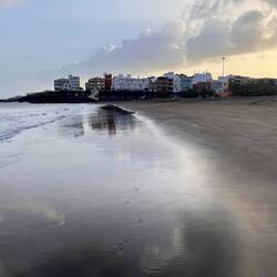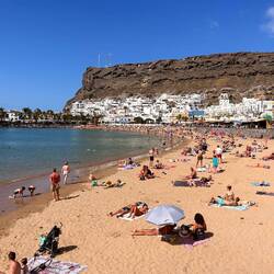 Auf der Rückreise entdecken wir den Strand von Melenara mit seinem dunklen Strand.