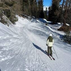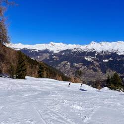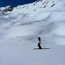 Auch heute war wieder super schönes Wetter! Die Pistenverhältnisse waren bis zum Mittag top, danach wurde der Schnee schwer und bildete grosse Schneemaden.