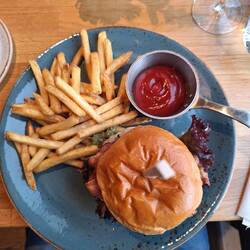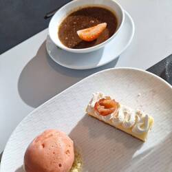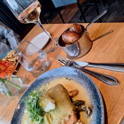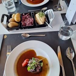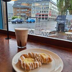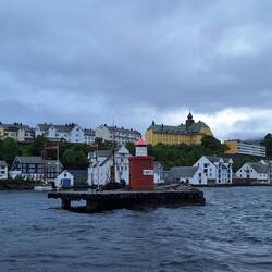 Die Stadt ist wirklich sehr schön, hat uns gefallen was wir gesehen haben. Punkt genau sind wir wieder auf dem Schiff angekommen. Bevor wir die Sonne und das (für uns) warme Wetter auf Deck genossen haben, haben wir noch Wasche gewaschen. Und 1145 Uhr haben wir ausgecheckt und wieder ein sonniges Plätzchen an Deck gesucht bis wir um 1630 Uhr in Kristiansund angelegt haben. Hier sind wir definitiv von Bord gegangen. Die Postschifffahrt hat uns gefallen, aber die drei Tage haben uns gereicht. Landschaftlich war es das absolute nonplusultra, sonst hätten wir es nie so geniessen können. In Kristiansund erwarteten wir an der Anlegestelle einige Taxis, wie bis jetzt immer. Leider genau wenn sie gebraucht werden, ist nirgends eines zu sehen. Also zuerst mal Google fragen wie weit es zu Fuss bis zum Hotel sind es 2,5 Kilometer und der Bus fahrt am Sonntag eigentlich nie. Also nehmen wir den Weg zu Fuss. War doch rächt anstrengend, nicht auszudenken wie es mit dem gelben Seesack gewesen wäre 🥴. Im.Hotel haben wir kurz eingecheckt, Koffer aufs Zimmer und ein Taxi bestellt. Um 1800 Uhr müssen wir am Flughafen Kristiansund sein. Wir sind beide etwas aufgeregt... 15 Minuten Taxisfahrt und etwas später sitzend in unserem Toyota, sind wir wieder ruhiger. Der Flughafen ist verschwindend klein und der Weg zurück zum Hotel voll easy. Kristiansund ist wie ausgestorben, alles hat zu, ausser ein Restaurant gleich um die Ecke vom Hotel. Probieren wir sofort aus. War sehr lecker. Wie haben sogar eine Vorspeise mit Klippfisch bestellt.