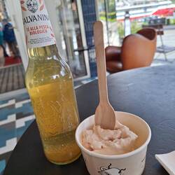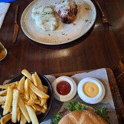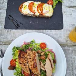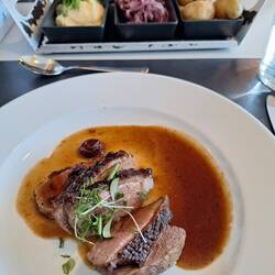 Auf dem Rückweg fängt es wieder an zu regnen, sogar ganz fest, gerade als wir in Olaf sitzen. Wow, was für ein Glück wir haben. Jetzt geht es retour ins Hotel, bald ist Zeit für das Nachtessen (ein Magen knurrt). Unterwegs kommen wie noch an einem Outdooroutletgeschäft vorbei. Da schmöckern wir noch ein wenig. Den Znacht geniessen wir wieder im Hotelrestaurant. Heute Cesars Salat mit Lachs für mich und Lachs für Roman. Ach ja zur Vorspeise haben wir uns ein superleckeres Scampi Bruschetta geteilt. Voll und müde geht es in unser Zimmer, ausruhen, Bericht schreiben und später zufrieden einschlafen.Read more