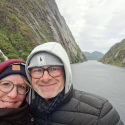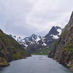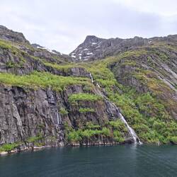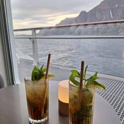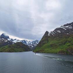 Die kurze Nacht war durchzogen. Ich konnte einfach nicht einschlafen, habe jede noch so kleine Bewegung und Neigung gemerkt. Was solls werde mich schon noch daran gewöhnen. Das Schiff ist sehr ruhig unterwegs. Um 0830 Uhr habe wir uns im Restaurant fürs Frühstück eingefunden. Fein und auch sehr reichhaltig. Da unser Reisebüro verpasst hat uns die Vollpension auch wirklich zu buchen (bestätigt wurde es uns) habe wir nach dem Frühstück noch den Znacht gebucht. Das Schiff ist sehr schön. Ganz kurz in unsere Kajüte und schon wird uns im TV eine Sehenswürdigkeit angekündigt. Rauf auf Dock 9 zum Bug. Wir passieren eine enge Stelle und vorallem eine nicht sehr tiefe. Das Wasser wurden zwischen den Pfosten auf 7 Meter Tiefe ausgehoben (Schiff hat eine Tiefe von 5 Metern). Kurzer Halt in Risøyhamn und denn gehts auch gleich weiter. Die neue Daunenjacke von Fabi (in Tromsø gekauft) ist schon in Gebrauch. Auf Deck ist es soooo frisch. Zwischendurch habe wir uns an geschützes Eckli draussen (sogar mit Heistrahler) oder nach drinnen an eines der Panoramafenster gesetzt. Die Landschaft ist so schön und es ist so friedlich. Auf Fotos kann man diese Schönheit gar nicht festhalten. Unser Kapitän ist, da es schönes Wetter ist, in den Trollfjord gefahren. Einfach nur WOW. Wir geniessen einfach nur die Natur und den Moment. Wir verpassen schon fast unser erkämpftes Nachtessen 🤓. Ich wähle Sashimi von der Lachsforelle und gegrilltes Seemanssteak. Roman nimmt auch auch das Rindelfilet und danach das Glace. Jetzt hätten wir bis 2030 Uhr Ausgang in Svolvær. Es regenet aber stark und wir mögen einfach am Panoramafenster sitzen und lesen. Bevor wir dann endgültig uns ins Zimmer verziehen, genehmigen wir uns noch einen Mojito. Ins Zimmer will ich, weil es stark schwankt, da dass Meer sehr unruhig ist. Hoffentlich kann ich schlafen. Gefällt mir so gar nicht 🥺🥴.Read more