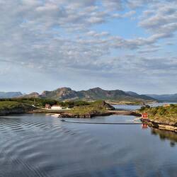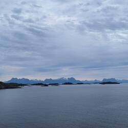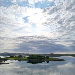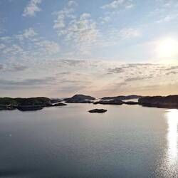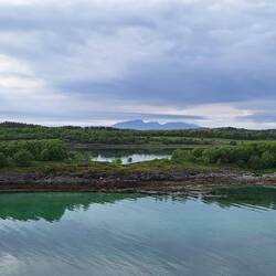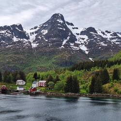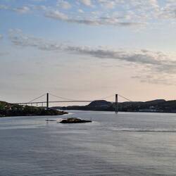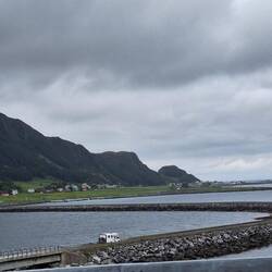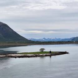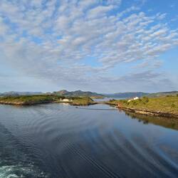 Heute war un 0700 Uhr Tagwache. Wollten es beim Frühstück ein wenig mehr Gemütlichkeit. Danach sind wir in unser Zimmer und haben uns warm eingepackt und sind raus auf Deck 8. Um 0854 Uhr haben wir den Polarkreis N66° 33' 48" "überfahren". Heute ist das Wetter neblig, windig und nass - sehr mystisch. Roman ist ein wenig erkältet, daher suchen wir schnell wieder einen gemütlichen Sessel in der Wärme und lesen. Nach dem Mittag haben wir uns mal in unseres Zimmer verschoben. Heute werden wir, auch wenn es regnet, in Brønnøysund von Bord gehen. Um 15.15 Uhr legen wir an und siehe da, es regnet. Raus, endlich mal wieder so richtig die Beine vertreten. Die Ortschaft ist sehr klein und nicht wirklich etwas besonderes. Egal wir können schlussendlich an der Sonne unseren Apfel geniessen. Das Wetter wird immer besser. Wieder an Bord ziehen wir uns für den Znacht um und gehen an Deck. Wir fahren am Torghatten vorbei. Torghatten ist ein Berg in der Nähe von Brønnøysund mit einer besonderen geologischen Form. In seiner Mitte hat er ein etwa 35 Meter hohes und rund 160 Meter langes Loch. Entstanden ist es vermutlich durch Ausspülungen der Meeresbrandung während der immer noch andauernden postglazialen Landhebung nach Abschmelzen der Gletscher aus der letzten Kaltzeit. Jetzt müssen wir aber los zum Nachtessen. Obwohl wir uns fast nicht von der Sonne und der wundervollen Landschaft losreissen können. Heute gibt es für mich Bruschetta, Ente und einen Käsekuchen mit Erdbeereis und Roman nimmt Sashimi, Ente und Schoggi-Mocca Creme Brule. War sehr lecker. Nach dem Essen begegen wir uns sofort wieder auf das Aussendeck. Mit dem Gesicht zur Sonne geniessen wir die Landschaft. Zur Feier des Tages wählt der Kapitän sogar eine Route durch eine Inselgruppe, die er sonst nie fährt. Wir sind begeistert. Müde und glücklich fallen wir in unser Bett.Read more