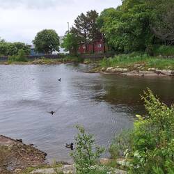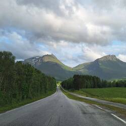 Wir verharren noch ein wenig in der Kirche weil es doch sehr schüttet. Etwas später nehmen wir den Bus rüber nach Tromsoya und kehren im Kaffebønna ein und geniessen eine feinen Kaffe und etwas Süsses. Als die Sonne wieder scheint ä, machen wir uns auf. Einfach laufen etwas ausserhalb der "Stadt". Hier hat man schnell das Gefühl man sei auf dem "Land". Schön und schmuck, aber die Strassen sind ab und zu doch sehr schlecht "zwäg".