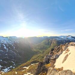 Der 5 km lange Weg zum Dalsnibba wurde im Jahre 1939 fertiggestellt. Er ist eines der ehrgeizigsten Straßenbauprojekte Norwegens. 11 Serpentinen und ungefähr 10% Steigung sind ein Erlebnis und der Auftakt zu dem, was dich auf dem Gipfel erwartet. Nicht zuviel versprochen, wunderschön. Wieder dick eingepackt geniessen wir um 2230 Uhr bei 6 Grad die Sonne und die Aussicht. Um 2330 sind wir wieder im Hotel schrieben den Bericht, ziehen die Vorhänge und legen uns schlafen. Ein weiterer wundervoller Tag geht zu Ende.Read more