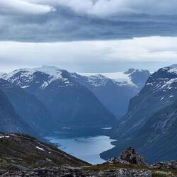 Mehr als die Hälfte des Nationalparks ist mit dem mächtigen Eis des Jostedalsgletschers, der gleichzeitig das größte Eisfeld des europäischen Binnenlands ist, bedeckt.