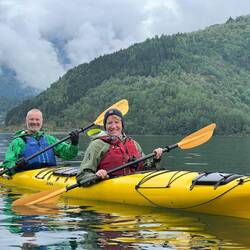 Zuerst dachten wir, wir könnten es ganz gemütlich mit dem Frühstück nehmen. Ups auf einmal mussten etwas Gas geben, denn wir mussten um 0945 Uhr bei Activ Loen gegenüber unserem Hotel sein. Also ich hätte heute morgen am liebsten gekneift. Aber wir haben ja schon gebucht 🫣. Ja dann gehen wir mal Kajak fahren. Wir hatten eine kurz Einführung, mussten uns Wetter- und Kajaktauglich einkleiden und schon wurden wir "gewassert". Rickard war ein super Guide. 1,5 Stunden auf dem Wasser, ein sehr schönes Erlebnis, wir haben es genossen. Bevor wir wieder ins Hotel sind, haben wir im Laden Joker unser Mittagessen eingekauft. Dieses haeb wir auf unserem Balkon genossen. Wir war es aber schnell zu kalt. Also unter die Bettdecke und lesen. Heute haben wir einen faulen Tag eingezogen. Etwas lesen, einlesen in die Shightseeings für die nächsten Tage und einfach sein. Darf auch sein, sind ja schliesslich Ferien 😀.