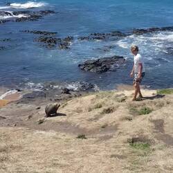 Leowillis hatten uns nun auch wieder eingeholt und so startete am Tag drauf unsere Südinselerkundung mit einem obligatorischen Stopp in der Robbenbucht. Wie wir später rausfinden sollten, gibt es an der ganzen Ostküste Robbenbuchten, aber beim ersten Mal war es doch noch recht beeindruckend ;)