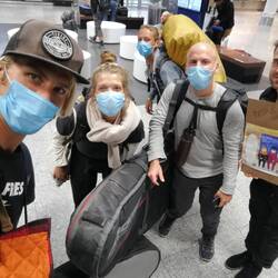 So warteten wir also geduldig, mit den Taschen als Abstandshalter, bis wir zum Check-In kamen; das komplette Team der deutschen Botschaft war vor Ort und kümmerte sich rührend; Es wurde auch irgendwie klar, dass es mitnichten nur Deutsche auf dem Flug sind, sondern eigentlich Leute aus ganz Europa. Die böse Überraschung kam aber denn doch noch am Check-In: 160 Dollar für die Surfbretter (eigentlich nur für 1) zu bezahlen, widerstrebte vor allem Mo - aber bei wem sollte er sich beschweren???