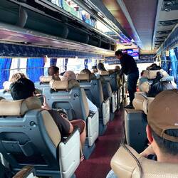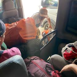 Wir holen uns ein Taxi zur Bus Station und nachdem alle Pakete und Rucksäcke dann im Bus drin sind geht es endlich los.