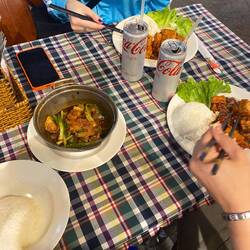 Als wir gerade vom Museum losgehen fängt es in Strömen an zu regnen, wir suchen uns schnell ein Restaurant und essen dann (klitschnass) endlich Mittagessen. Das typisch vietnamesische Essen ist wirklich ein Traum!