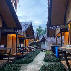 Der Weg ist kurviger als die Kurven aufm Ha Giang Loop, Anna und Emma schlafen- ich weiß nicht wie Amelie es so ausgehalten hat ohne komplette Übelkeit- und schon sind wir am Zielort angelangt. Es ist alle nass, auf den Philippien gab es die letzten Wochen viel Regen und Überschwemmungen, und es wirkt sehr tropisch.