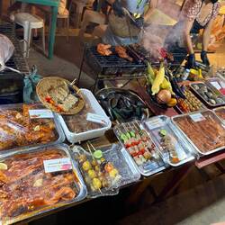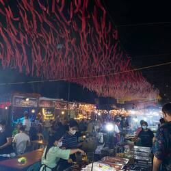 Als es dann dunkel wird gehen wir den Berg wieder runter und auf einen kleinen Markt in ein sehr volles, sehr gutes Restaurant.