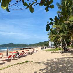 Es steht nur Strand auf der Tagesplanung, nach dem Essen geht es also ab an den Strand, der ziemlich voll ist. Wir finden aber einen guten Platz, genießen die Sonne und endlich wieder Wasser ohne Wellen.
