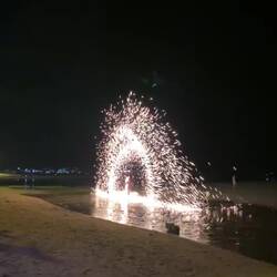 Nach dem Essen entscheiden wir uns runter an den Strand zu gehen. Dort werden wir überwältigt von mehreren Feuershows, die den ganzen Strand entlang gehen.