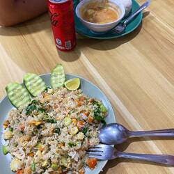 Ab 12 Uhr sitzen wir dort, essen Frühstück, probieren den Mango Sticky Rice ( auch sehr lecker) und gucken Formel 1, bis 16 Uhr!