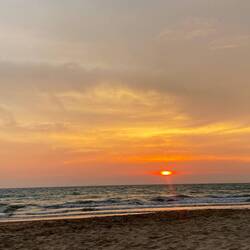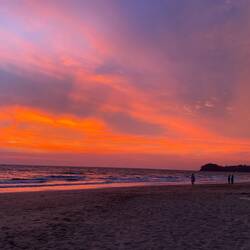 Zum Sonnenuntergang gehen wir nochmal zum Strand und haben einen wunderschönen Sonnenuntergang mit unglaublichen Farben, der gar nicht aufhört und immer schöner wird.