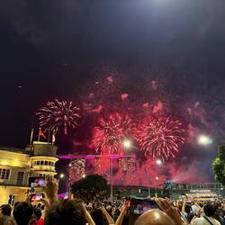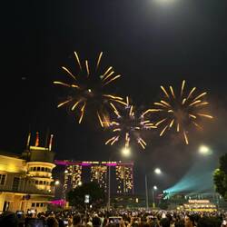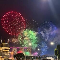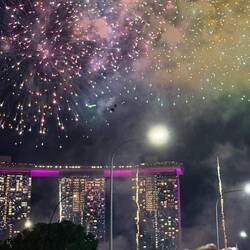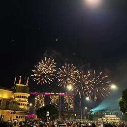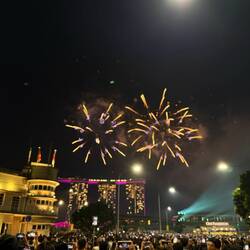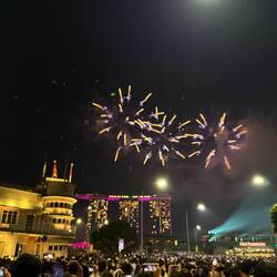 Es waren um die 70%. Das ist schon eine Hausnummer. Sind dem Singapur River entlang gelaufen, um nach einer passenden Stelle zum Feuerwerk schauen, zu schauen.