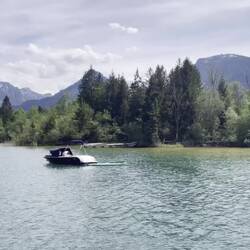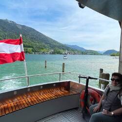 Ce matin en trottinette et en bateau pour traverser le lac et aller à St Wolfgang. Le St Trop Autrichien.