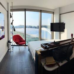 We’ve made it into the USA… the customs rush baggage collection and Hotel checkin all happened pretty quick. The only thing above us is the roof top pool and the TWA “Connie” is just outsideLeer más