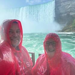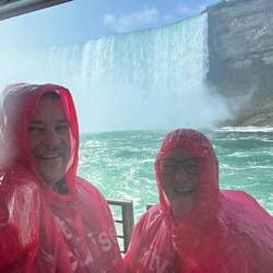 A little bit of sightseeing down at the falls and walked through Clifton Hill. Booked our cruise and behind the falls walk forLeer más