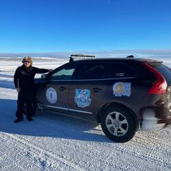 Bei schönstem Sonnenschein konnten wir auf dem gefrorenen See herumkurven. Natürlich war Marc der Fahrer 😉. Trotz cooler Temperaturen war dies Prisca zu heiss!