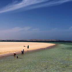 Schnorcheln jeweils an beiden Enden der Bucht mit knapp 5 km einfachem Fußmarsch dazwischen